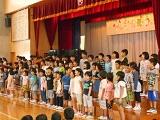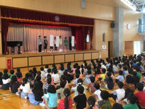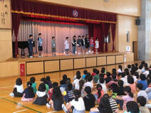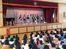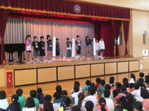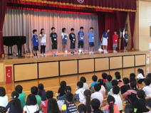 児童会を中心に全校児童で歓迎のことばを言いました。