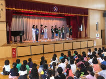 学校のために働いてくれている6年生が、全校児童に委員会の内容を紹介しました。