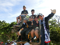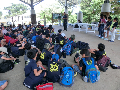 たくさんの保護者、先生方、後輩たちに見送られ、出発!