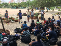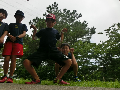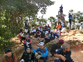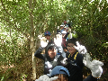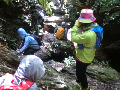 ロープを使ってやっと登れるような崖もみんなで乗りこえました。