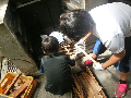 薪で火をおこし、苦しい煙の火でも、必死にがんばりました。
