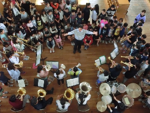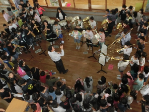 校長先生の指揮のもと、素晴らしいハーモニーが銘苅小に響きました。