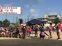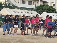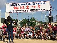 9月14日(土)17:00~ 安岡中学校運動場で、安岡中校区青少協主催の「納涼まつり」が行われました。オープニングでは、銘苅小と安謝小の金管バンドクラブが合同で演奏を行いました。軽快なリズムで盛り上がりました。