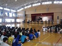 9月19日(木) 音楽朝会が行われました。それぞれの学年で練習してきたカスタネット、リコーダー、けんばんハーモニカで「トルコ行進曲」を演奏しました。はじめは、なかなかリズムが合わなかったのですが、最後は、全校児童の演奏が一つになり、ステキな曲に仕上がりました。