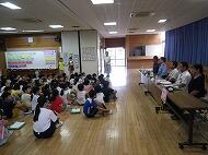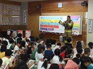 9月26日、2年生の生活科の授業「単元:たちたんけん」で地域の方を招いて、町の人と仲よくなろう会を行いました。ホーム安岡の長堂さん、那覇市消防局の仲宗根さん、那覇警察署の糸満さん、銘苅こども園の立津さんの4名の講師の方から、それぞれのお仕事についてお話を聞きました。2年生は、メモをとりながら真剣にきき、質問等をしていました。