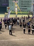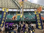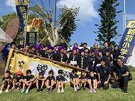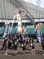 6日(日) 「旗頭フェスタ」が沖縄セルラースタジアムで行われました。夏休みから旗頭の持ち方や鉦・太鼓の練習を行ってきました。本番は「飛翔」と書かれた銘苅小旗頭をかかげ、勇壮でたくましい演舞をしてくれました。