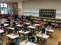 校内放送で校長先生、児童会代表の挨拶を聞いた後、