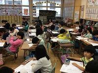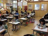 今年も、新春の喜びや願い、そして決意などを力強く表現することを目標に、書き初め会を開催しました。低学年は教室で、中学年・高学年は体育館で、それぞれ硬筆・毛筆の書き初めを行いました。どの子も真剣に正しい姿勢で集中し、一字一字丁寧に書いていました。