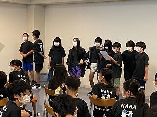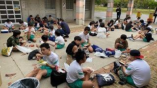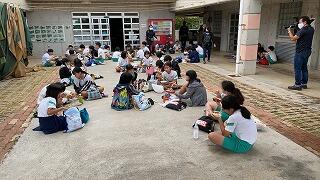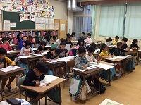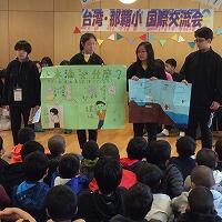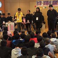 台湾人の中学3年生と引率教師の総勢31名が那覇小学校を訪れました。3校時はランチルームで台湾の紹介をして頂きました。クイズやポスターなどを使った発表で6年生も楽しく参加していました。質問タイムでは、質問をした児童にプレゼントがあることから、たくさんの6年生が挙手して質問する様子も見ることができました。