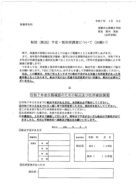 令和6年度 転校(転出)・現住所調査について(協力依頼)