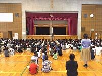 今月のお話朝会は、家庭学習を工夫して継続している児童への表彰を行いました。その後は、校長先生から家庭学習の必要性などのお話をしっかり聞き、これからもさらに向上しようという意欲を持つことができたようです。