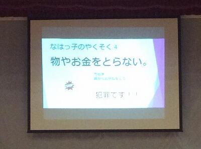 楽しい冬休みを間近にして、子ども達も「ウキウキ・ワクワク」。そういう時に心に隙が生まれるよ。今回の朝会では、生徒指導主事の榮山教諭によるお話で「なはっ子の5つの約束」を児童全員で確認しました。きまりを守って楽しい冬休みが過ごせるよう、学校・家庭・地域でなはっ子を見守っていきましょう。