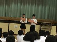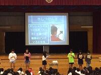 児童朝会の中で、保健委員会の委員の紹介・仕事内容・虫歯予防について、6年生よりお話がありました。自分たちで工夫して発表をしていました。流石!6年生。