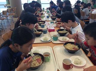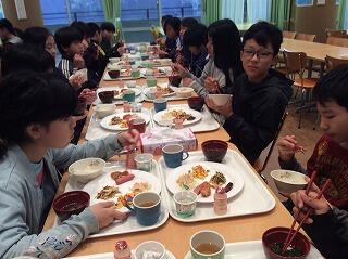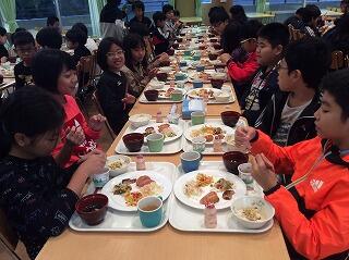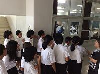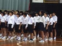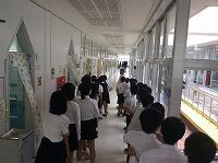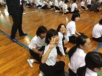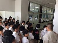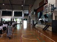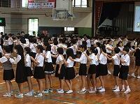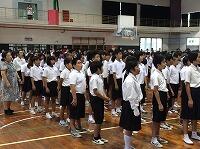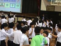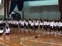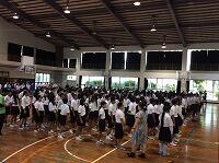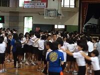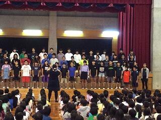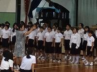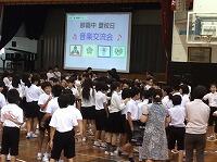 小中一貫教育の中、本日、那覇中学校で音楽交流会が行われました。まず、はじめに那覇中生徒会より、中学校のガイダンスの説明がありました。その後、中学校教諭による校内の案内がありました。理科室(4教室)・技術室・美術室などを案内してもらいました。児童は、興味深く話を聞きながら説明を聞いていました。その後、体育館に戻り音楽発表会を行いました。司会進行を本校の6年生が務めました。会の中で、3小(泊・若狭・那覇)の6年生でゲーム「じゃんけん列車」をしました。楽しく、他校の児童と交流していました。さて、合唱「明日の空へ」の方は・・・、圧巻の歌声で、終わった後は、拍手喝采。見事な歌声でした。そして、会の終わりには、「翼をください」を全員で合唱しました。小中の繋がりを強く感じるとともに、中学校進学に向けた意欲付けになる良い1日となりました。