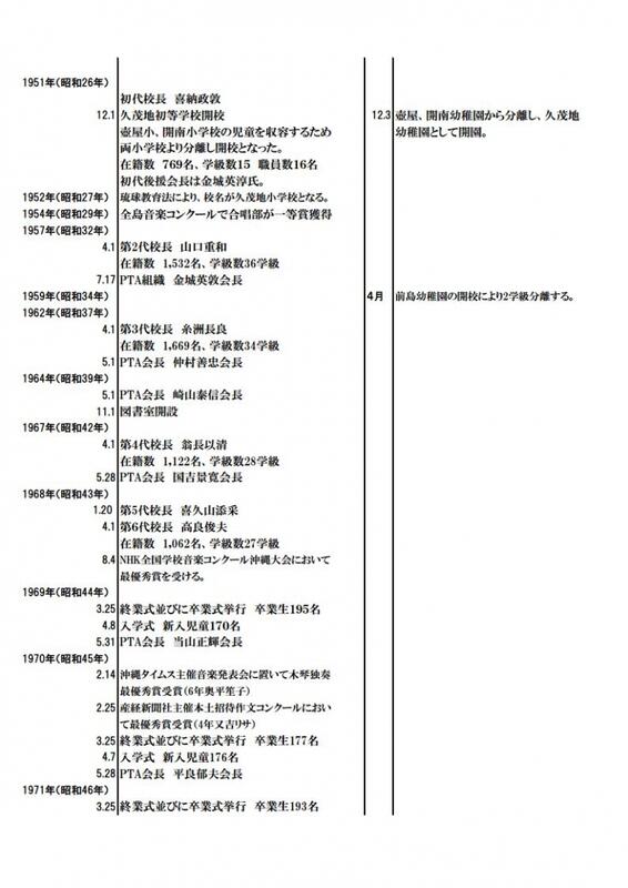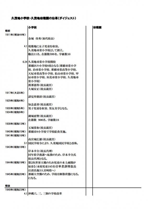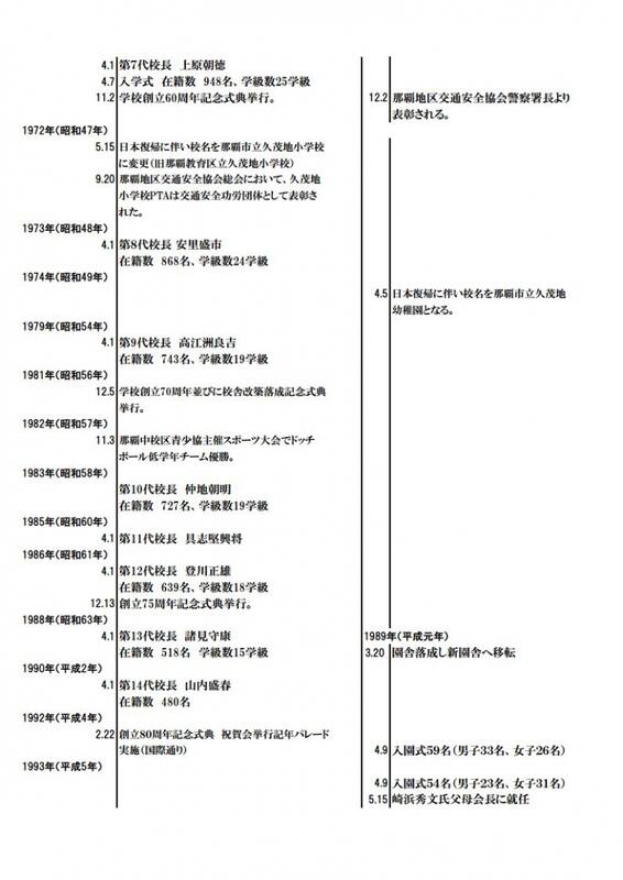 那覇市立久茂地小学校・幼稚園の お も い で 久茂地小学校創立100周年・幼稚園60周年記念誌より 久茂地小校長・PTA会長 写真 おぼえてるかな~小学校校歌 幼稚園園歌100周年記念式典風景(創立100周年記念誌より)思い出のアルバム なつかしいな~ 作成 那覇市教育委員会 総務課TEL 098-917-3500