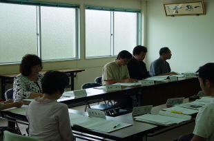 平成23年度 那覇市立教育研究所 運営審議会平成23年6月1日(水) 教育研究所 会議室教育研究所 田中 浩三 所長運営審議委員長 西村 貞雄(琉球大学名誉教授)運営審議委員 松田哲哉(那覇教育事務所 指導班長)運営審議委員 安里 恒男(総合教育センター指導主事)運営審議委員 佐々木りん子(大道小学校 校長)運営審議委員 儀間 実子(安謝小学校 教頭)運営審議委員 石黒 冨美子(首里子どもの本を楽しむ会 代表)運営審議会の様子運営審議会の様子