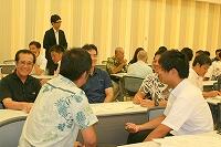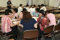 平成28年度理科ステップアップ研修会 投稿日時 : 2016/06/27 情報教育指導主事 平成28年度理科ステップアップ研修会を2日間に分けて実施しました。今回は講師として、ノートルダム女子大学教授の 小川博士 先生をお招きしてご講話をいただきました。演題は「明日の理科授業づくりへのヒント」でした。研修は、アイスブレークに始まり、那覇市の理科教育の現状を確認後、小中一貫グループでの「グループワークショップ」で小中の垣根を越えて、いろいろな意見を出し合いました。その中で出てきた課題等を含めた上で、講義をして頂きました。参加した先生方からは「これからの理科の授業づくりに生かせるお話でとても勉強になりました。」「グループワークを行ったことで、小中で共通する育てたい力、大切にしている事など、確認できた。また意見を交わすことができたことで、中学校で困っていることがわかり、小学校での改善点がわかりました。」などの感想をもらいました。