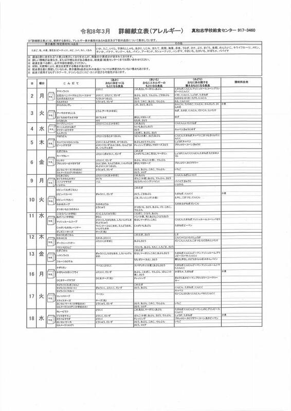 給食のお知らせ