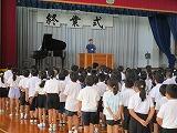 10月11日(金)に、一学期終業式を開きました。4年生の代表児童は「発表、部活動、国語や算数」、2年生の代表児童は「水遊び、けてぶれで自主学習、係活動、算数」を頑張ったとして発表しました。校長先生が、「今日は、一学期を振り返る大事な日です。一学期頑張ったことは、たくさん褒めて貰いましょう。続けて頑張りたいことは、また二学期も頑張りましょう。」と話されました。仲井真っ子の皆さん、今日はたくさん褒められて素敵な日になりますね。