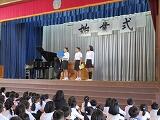 10月23日に、表彰朝会をしました。第七十九回九州合唱コンクールで大賞をとった合唱団が表彰され、皆から大きな拍手を貰いました。