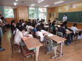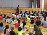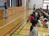 お話の中では、自分たちと同じくらいの年齢の子どもたちの体験談や、記念館に展示されている当時の資料などが紹介され、戦争のこわさや当時の沖縄の様子、そして命の大切さについて、わかりやすく語っていただきました。児童たちは真剣な表情で耳を傾け、話を聞いていました。