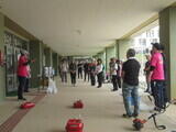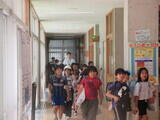 不審者役の方が学年のフロアに現れ、校内放送で合言葉のキーワードが伝えられると、教室では担任の先生の指示に従い、児童たちは全体的に素早く避難行動をとることができました。しかし、一部で声を出して騒ぎながら移動した場面もあり、校内放送が聞き取れなかった児童もおり課題も残りました。