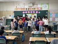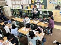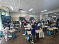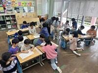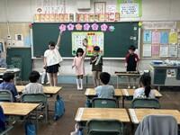 2月16日(月)、小禄こども園をはじめ11の保育園・幼稚園から、令和8年度入学予定の年長児38名をお招きし、1年1組、1年2組の教室で「お招き会」を開催しました。招待する側の1年生は、とても立派な姿を見せてくれました。司会進行を堂々と務め、プログラムに沿って国語・算数・体育・音楽の学習紹介を行いました。国語では、1組が「はなのみち」、2組が「うたにあわせてあいうえお」を、大きな声と身振りを交えながら音読しました。算数では、足し算や引き算の問題をイラストとともに楽しく出題しました。体育では、前跳び・後ろ跳び・駆け足跳び・長なわを披露し、音楽では「きらきら星」の合唱と、すず・トライアングル・鉄琴・タンバリン・鍵盤ハーモニカによる合奏を元気いっぱいに発表しました。なかよしタイムでは、1年生が園児のそばに寄り添い、名前やなぞり書きや色塗りの仕方を優しく丁寧に教える姿が見られました。最後に、手作りのメダルとあさがおの種をプレゼントしました。渡す側も受け取る側も笑顔いっぱいの、心温まるひとときとなりました。