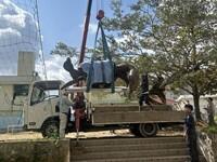 木製のオブジェは1995年から本校に腰を下ろし、小禄小学校を卒業した多くの方々に親しまれ、今年で31年目を迎えます。この度、本校を離れることになりましたが、これまで以上に地域の皆様の目に触れやすい場所への移管となります。今後も地域のシンボルとして、末永く愛され続けることを願っております。