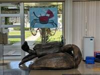2月21日(土)、長年にわたり親しまれてきたシオマネキの木製オブジェを、琉南建設の皆様にご協力のもと、無事に漫湖水鳥・湿地センターへ移管しました。1年フロアに寂しさを感じる声もあるかと思いますが、新天地ではさらに色艶に輝きを増し、入り口でどっしりと来館者を迎えています。本校からも近い場所にありますので、ぜひ一度湿地センターを訪れ、新たな場所でこれまで以上に存在感を増し、堂々と構えているシオマネキの姿をご覧いただければ幸いです。