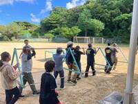 9月9日より始まった今年度の旗頭の練習も、本日(9/16)で3回目となります。子どもたちは、10月5日に沖縄セルラースタジアム那覇で開催される「第20回やる気・元気旗頭フェスタinなは」に向けて練習に励んでいます。希望者25名のやる気あふれる子どもたちです。地域の方々のご指導と職員からの励ましを受けながら、学校が地域活動の拠点となり活動を進めています。子どもたちは多くの仲間と共感し、地域の魅力に触れることで、さらに地域への愛着を深めていくことでしょう。