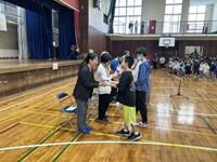 5月30日(金)、第51回ショウワノートベルマークキャンペーン全国1位表彰式を行いました。ショウワノート本社・ベルマーク教育助成財団から役員の方々が来校され、表彰状と記念品として、20万円相当の本(図書室へ寄贈)をいただきました。お陰様で本校は、子どもたちが楽しみながら読書活動ができる環境が整っています。