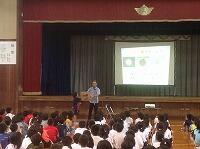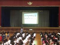 今朝の児童朝会は、掲示委員会とメディア委員会の発表でした。