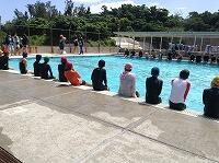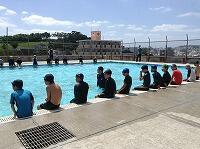 プール開きとして、6年生が安全祈願と初泳ぎをしました。