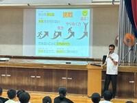 8月26日(火)、1学期後半がスタートしました。登校時の子どもたちの会話から「久しぶり~」「懐かしい!」の声が聞こえました。先生方も、子どもたちを笑顔で迎えました。校長先生からは、「沖縄尚学高校の甲子園優勝の話」「子どもたちが元気に登校してきてくれたことが嬉しいこと」「校長先生も夏休みに演劇とジョギングを頑張ったこと」「これからも目標を持って取り組んでほしいこと」「行事を仲間とともに協力しながらチャレンジしてほしいこと」を伝えました。下校時は、シャボン玉で子どもたちの笑顔がたくさん見られました。