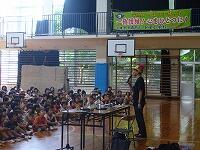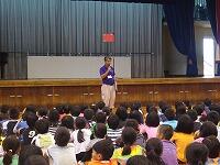 11月10日火曜日の授業参観日、4校時に体育館にて絵本作家のあきやまただしさんの読み聞かせライブが行われました。全校児童、保護者並びに地域の方々もご参加下さり、あきやまさんの世界を楽しんでいました。