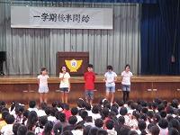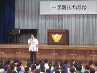全校朝会では、校長先生から「心の強い人」に成長してください。とのお話がありました。