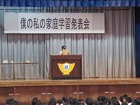 2月28日の全校朝会では、「僕の私の家庭学習発表会」が行われました。