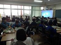 今朝は児童朝会が行われ、給食委員会による発表がありました。