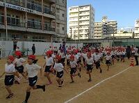 沖縄にしては寒い朝でしたが、全児童で元気いっぱい持久走に取り組みました。