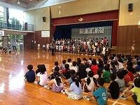 低・中・高学年ごとに1番を歌って、歌声を確かめてから、最後に全校児童で1~3番までを大合唱しました。