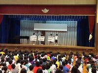 今朝の児童朝会は、掲示委員会とメディア委員会の発表でした。