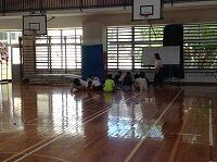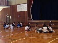 子ども会のリーダーとなる5~6年生が集まり、ラジオ体操の持ち方や時間、係分担などについて話し合いました。