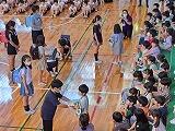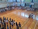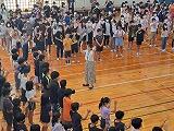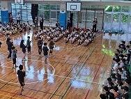 5月9日(金)に「1年生を迎える会」がありました。1年生から6年生まで全校生徒が集合しての会は4年ぶりで、子ども達はとても楽しそうに参加し、他学年の出し物を見ていました。舞台に座っている1年生も初めは緊張した様子でしたが、お兄さんお姉さんからのプレゼントやダンス、空飛ぶ絨毯(マット)等で、ニコニコ笑顔になっていました。