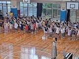 5月24日(水)に音楽朝会を行いました。今年度、第一回目ということで、小禄小学校「校歌」を歌いました。1・2年生の元気な歌声を聞いた後、3・4年生、5・6年生と綺麗な裏声を使った歌声を聞きました。子ども達からは「きれいな歌声だった」と「明るいきれいな声だった」と感想を発表してもらいました。