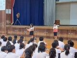 10月16日(月)に2学期始業式が行われました。全体で校歌を歌った後、3年生と6年生の代表児童の、2学期頑張りたいことの発表がありました。校長先生の話では、2学期には大きな行事が2つあり「お家の人を感動させるような、演技や演奏を頑張ってください」とのことでした。