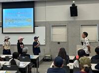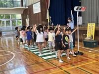 5月16日(木)、豊見城警察署の巡査さんを講師に迎え、本校1年生と小禄こども園児との合同で交通安全教室を行いました。信号の見方(赤・青・黄)の確認と横断歩道の渡り方の実技指導がありました。皆さんにとってとても大切な「命」を一人ひとりが自分で守れるように一緒にお勉強をしました。1年生の成長ぶりに小禄こども園の新里先生もビックリ!園児よりもはるかにお兄さん、お姉さんの顔つきになっていました。その後学級へ戻り、「歩行者信号の青点滅」の時の対応について振り返りました。