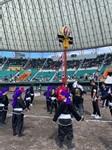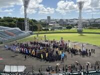 10月6日(日)、沖縄セルラースタジアムで旗頭フェスタが開催されました。本校からは、29名の児童が参加しました。学校から会場まで「ハーイヤ」のかけ声とともに旗頭を担ぎながら、移動しました。移動中に地域の方々から「頑張ってね」と声をかけられたり、手をふって頂いたりと子どもたちも勇気をいただきました。