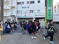 12月13日(金)、いよいよ6年生の大イベント、修学旅行の日がきました。荷物を詰め込んで笑顔で登校する6年生を多く見かけました。体育館での出発式では、合言葉「集団行動で友情を深め、責任を持ち、一人一人がけじめをつけて行動し、最高の修学旅行にしよう!」をみんなで確認し、いざ出発。正門付近には、1年生、3年生が見送ってくれました。今帰仁城跡まで約2時間バスで移動します。