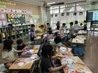 6月26日(木)、1年生の図工の時間で「ちょきちょきかざり」の授業をしました。子どもたちは、いろいろな材料で飾りをつくり、つなげて、貼り付けて、個性豊かな飾り物をつくりました。仕上がった作品に嬉しそうな笑顔を見せてくれた子どもたちです。