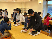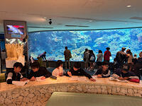 修学旅行2日目14日(土)、マリンピアザでの朝食を行儀よく食べ、片付けも自分たちで進んでできる素敵な子どもたちです。退館式でお世話になったホテルの皆さんへしっかりと伝え、次は海洋博へ。「1日目の思い出は一生の宝物になりました」by児童(^_^)